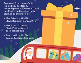 Du26nov.au13déc. Associations LE BUS DE NOËL PASSE PAR FONTAINEBLEAU ! Cette année, un Bus de Noël sillonne le territoire pour offrir un peu de magie aux enfants accompagnés par les Restos du Cœur.