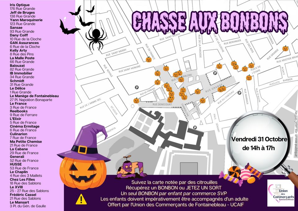 L'UCAIF vous propose de fêter Halloween à Fontainebleau en participant à une grande chasse aux bonbons, vendredi 31 octobre de 14h à 17h.