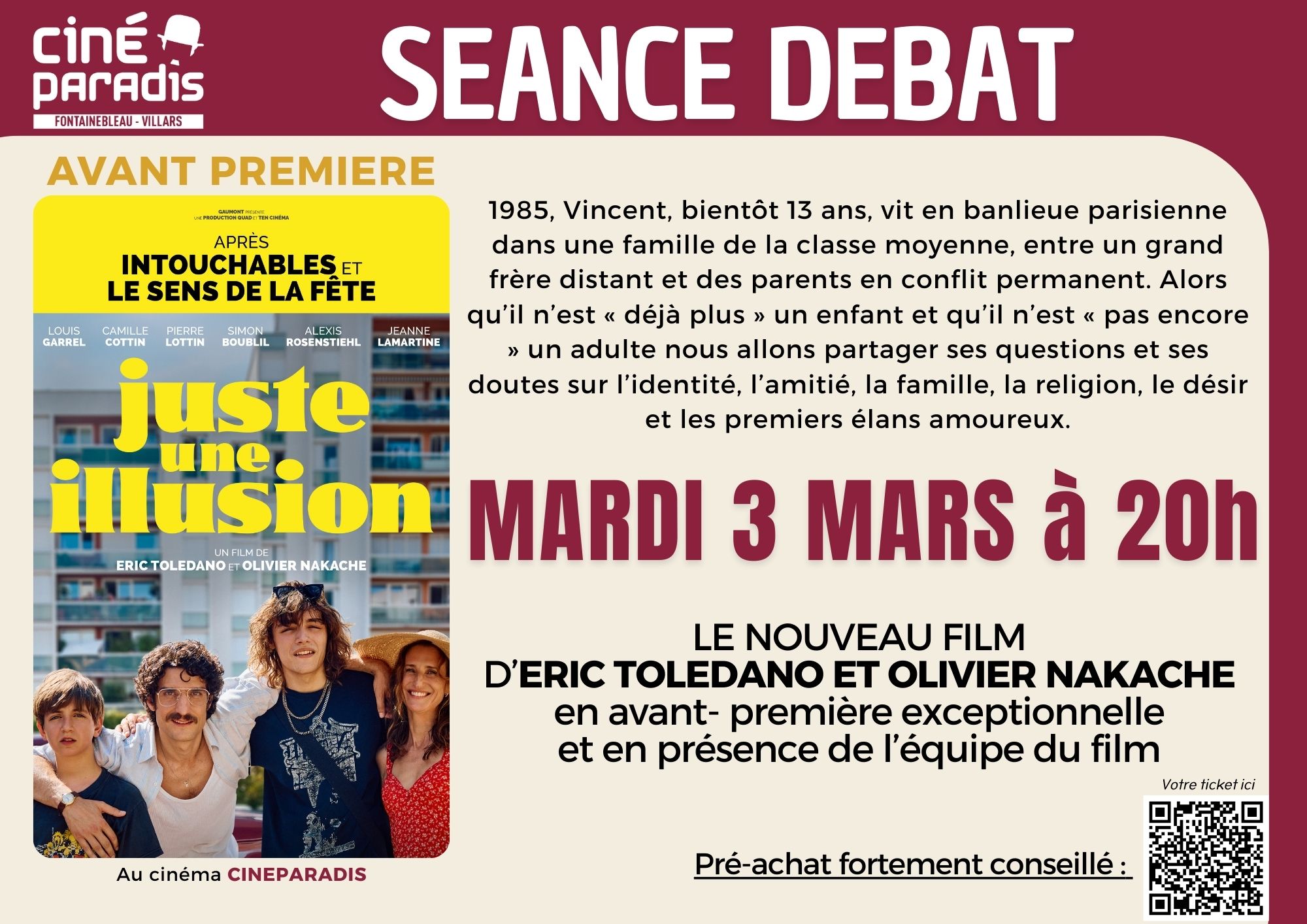 CINÉ-DÉBAT EN AVANT-PREMIÈRE AUTOUR DU FILM : "JUSTE UNE ILLUSION" AU CINÉPARADIS