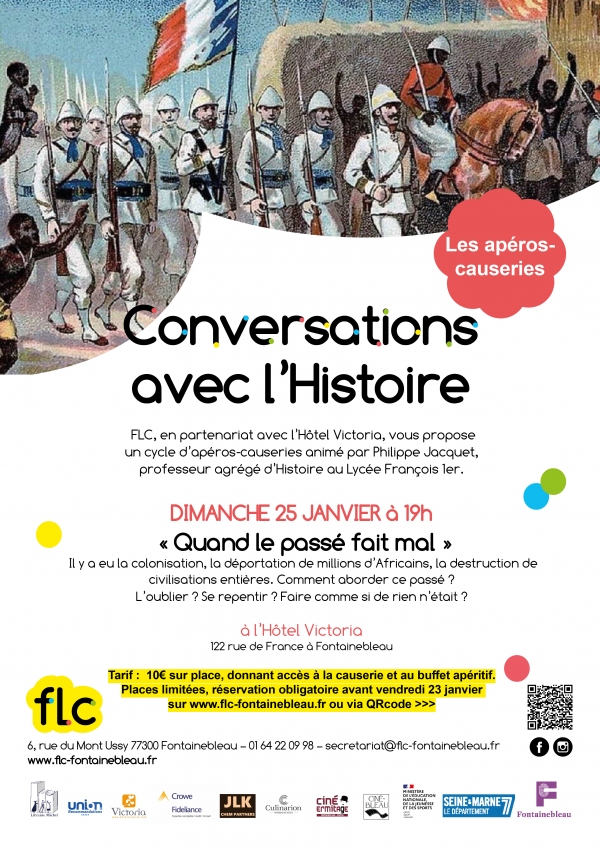 FLC, en partenariat avec l'Hôtel Victoria, vous propose un cycle de Conversations avec l'Histoire : des apéros-causeries animés par Philippe Jacquet, professeur agrégé d'Histoire au Lycée François 1er.