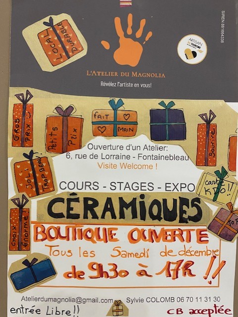 L’Atelier du Magnolia (6 rue de Lorraine), votre poterie à Fontainebleau, ouvre son atelier pour les samedis de décembre !