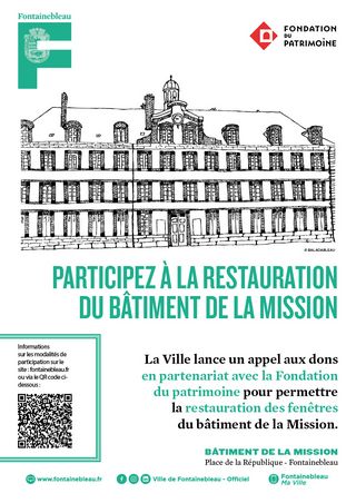 Lieu emblématique du centre-ville de Fontainebleau, le Bâtiment de la Mission fait partie intégrante de notre patrimoine. Pour préserver ce témoin de l’histoire locale et lui redonner tout son éclat, la Ville engage un ambitieux programme de restauration.